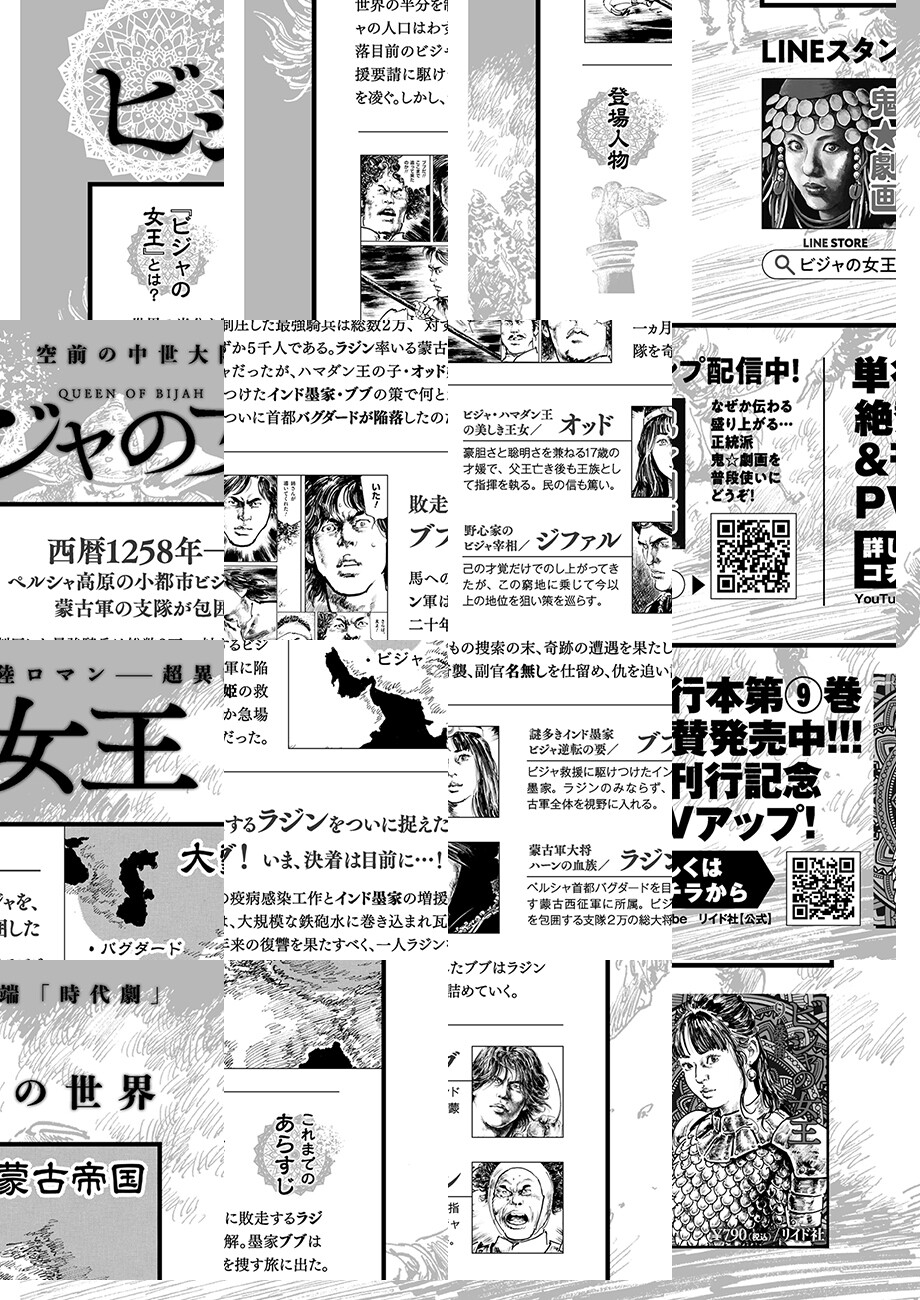 西暦1258年、 ペルシャ高原の小都市ビジャを、蒙古軍の支隊が包囲した。 世界の半分を制圧した最強騎兵は総数2万、 対するビジャの人口はわずか5千人である。 陥落は誰の目にも明らかだった———…。 モンゴル帝国によるペルシャ侵攻と、 大きな歴史のうねりの中で必死に抵抗する 小都市国家「ビジャ」を巡る攻防を描く。 さらに謎の集団「インド墨家」をも巻き込み、 繰り広げられるのは劇画史上最も異端な「時代劇」!!