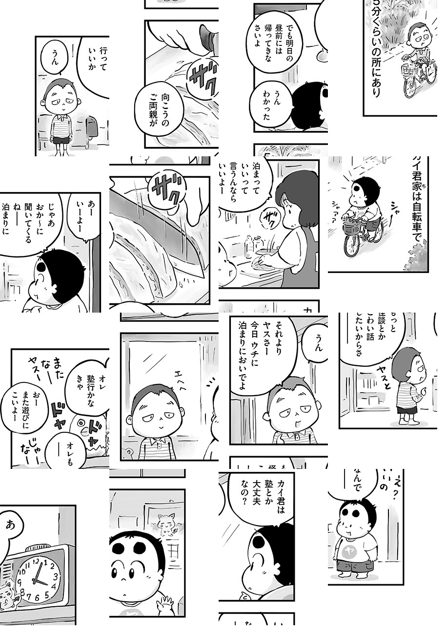 ユタの祖母を持つ、芸人であり新進気鋭の怪談師でもある「ヤースー」の多感な霊感少年時代を『クロ號』『猫なんかよんでもこない。』『漁港の肉子ちゃん』等で知られる「杉作」が優しく、恐く、アットホームに描く!!