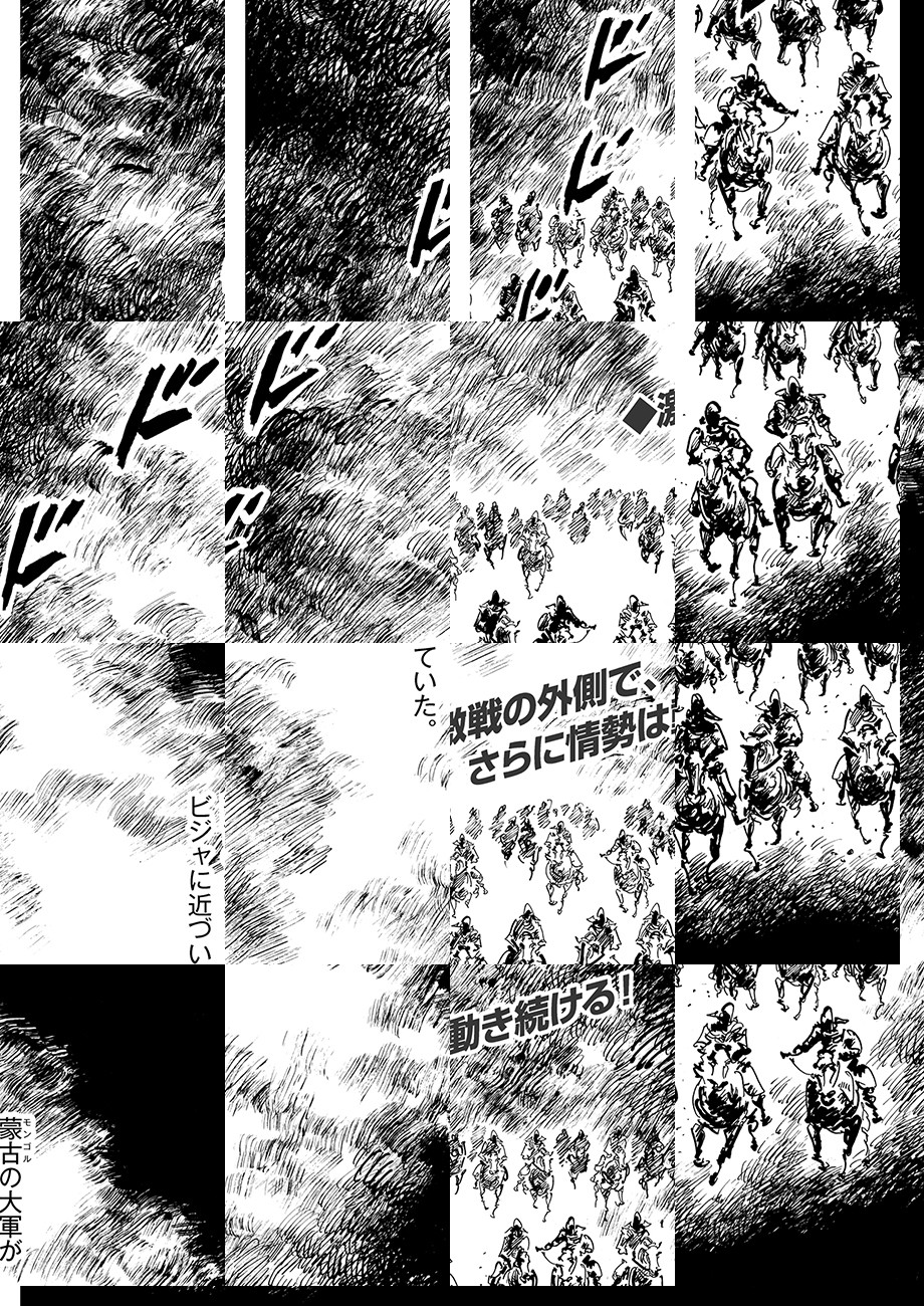 西暦1258年、 ペルシャ高原の小都市ビジャを、蒙古軍の支隊が包囲した。 世界の半分を制圧した最強騎兵は総数2万、 対するビジャの人口はわずか5千人である。 陥落は誰の目にも明らかだった———…。 モンゴル帝国によるペルシャ侵攻と、 大きな歴史のうねりの中で必死に抵抗する 小都市国家「ビジャ」を巡る攻防を描く。 さらに謎の集団「インド墨家」をも巻き込み、 繰り広げられるのは劇画史上最も異端な「時代劇」!!