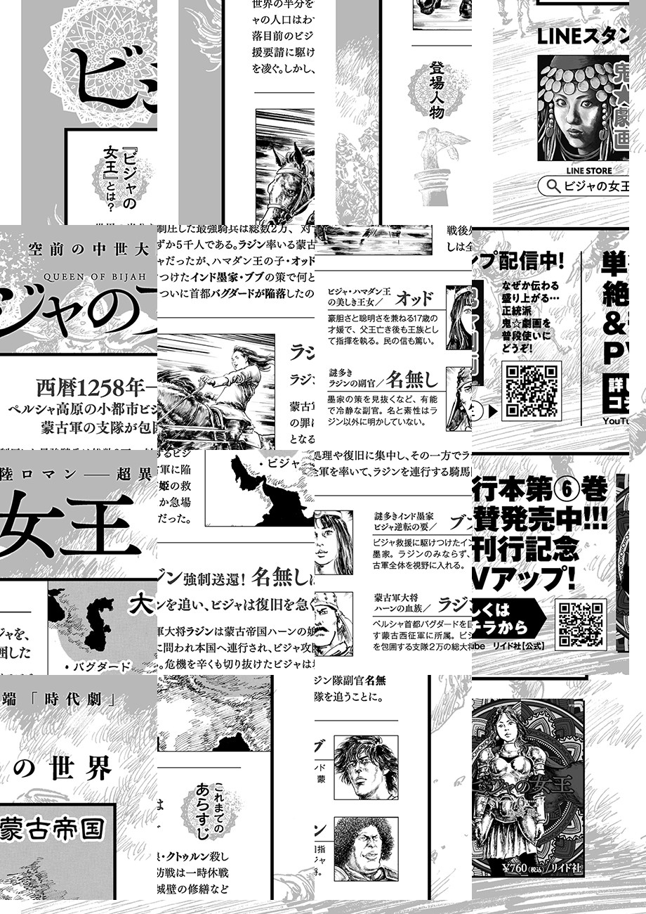 西暦1258年、 ペルシャ高原の小都市ビジャを、蒙古軍の支隊が包囲した。 世界の半分を制圧した最強騎兵は総数2万、 対するビジャの人口はわずか5千人である。 陥落は誰の目にも明らかだった———…。 モンゴル帝国によるペルシャ侵攻と、 大きな歴史のうねりの中で必死に抵抗する 小都市国家「ビジャ」を巡る攻防を描く。 さらに謎の集団「インド墨家」をも巻き込み、 繰り広げられるのは劇画史上最も異端な「時代劇」!!