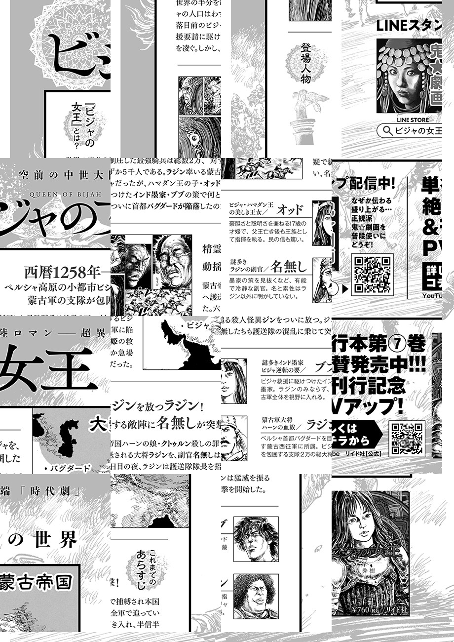 西暦1258年、 ペルシャ高原の小都市ビジャを、蒙古軍の支隊が包囲した。 世界の半分を制圧した最強騎兵は総数2万、 対するビジャの人口はわずか5千人である。 陥落は誰の目にも明らかだった———…。 モンゴル帝国によるペルシャ侵攻と、 大きな歴史のうねりの中で必死に抵抗する 小都市国家「ビジャ」を巡る攻防を描く。 さらに謎の集団「インド墨家」をも巻き込み、 繰り広げられるのは劇画史上最も異端な「時代劇」!!