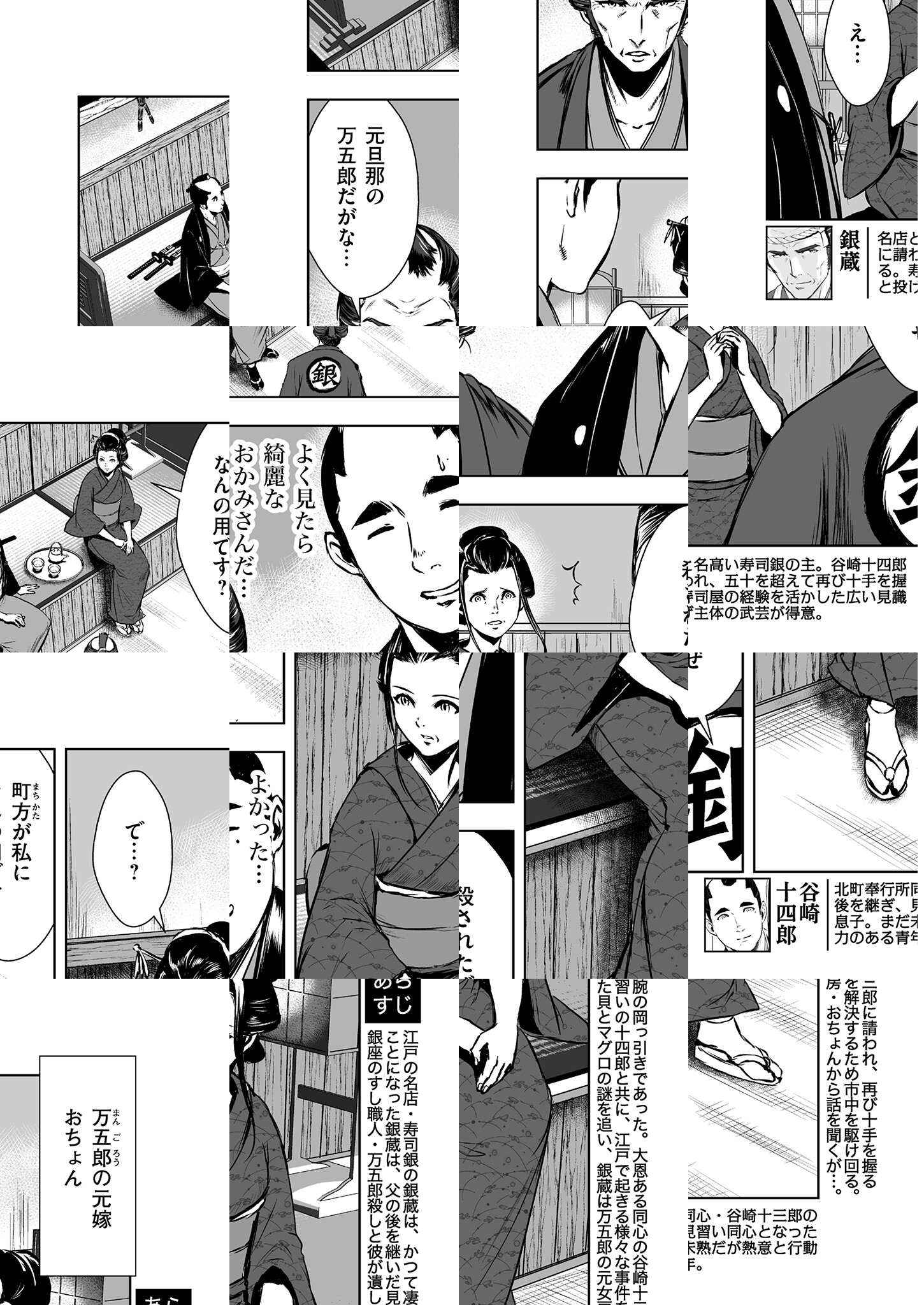 江戸の名店「寿司銀」の主・銀蔵は、かつて凄腕の岡っ引きであった。同心の谷崎十三郎に請われ、再び十手を握ることになった銀蔵は、父の後を継いだ見習いの十四郎と共に、江戸で起きる様々な事件を解決するため市中を駆け回る―――。