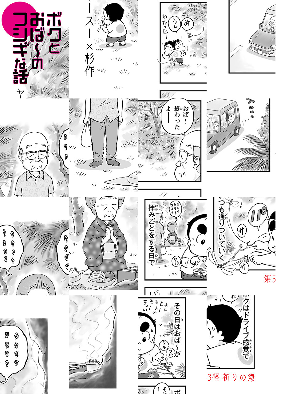 ユタの祖母を持つ、芸人であり新進気鋭の怪談師でもある「ヤースー」の多感な霊感少年時代を『クロ號』『猫なんかよんでもこない。』『漁港の肉子ちゃん』等で知られる「杉作」が優しく、恐く、アットホームに描く!!