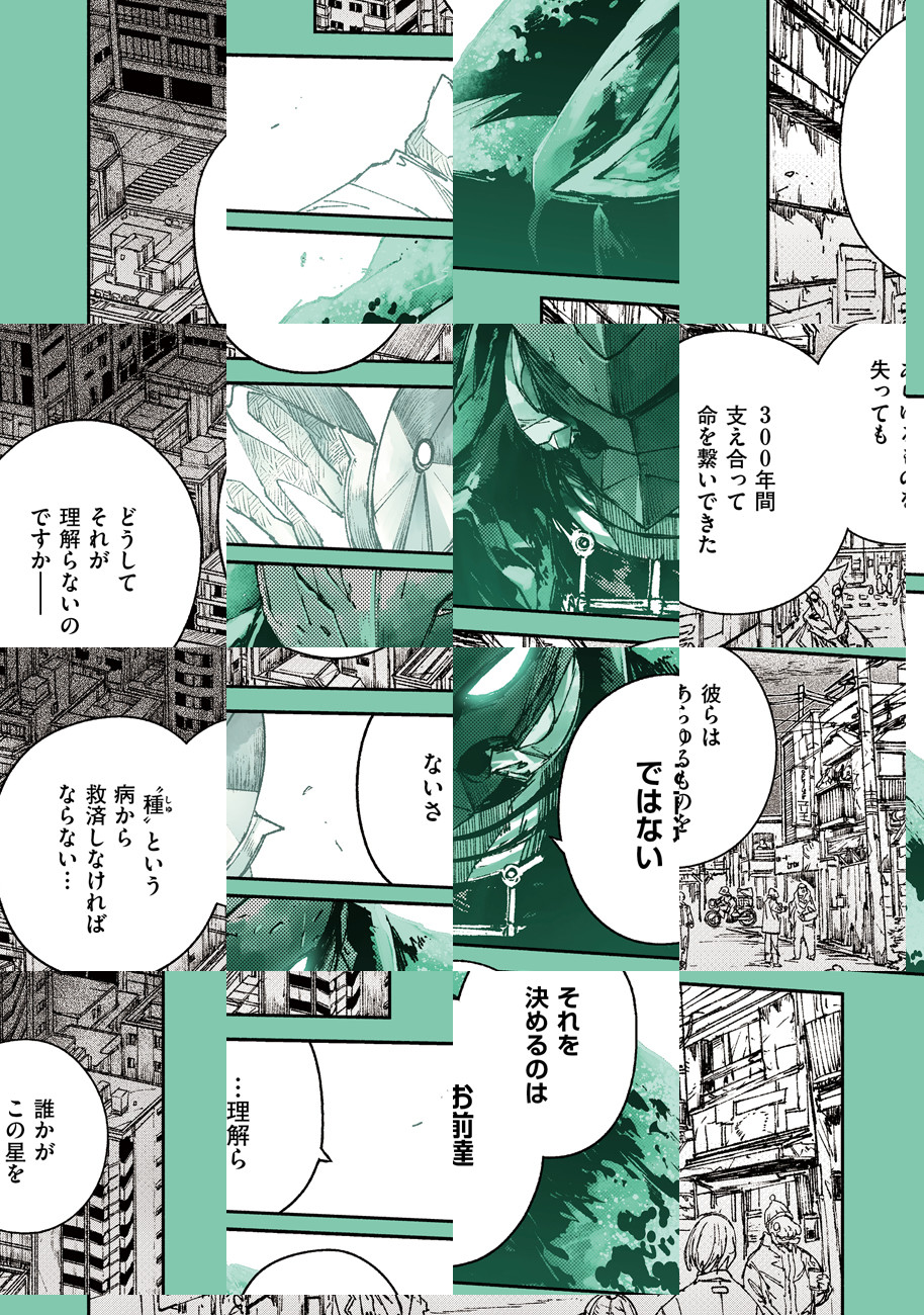 極大太陽フレアの影響で世界から色素が失われ、 異形化が進んだ人類。世界に「色」を 取り戻すべく研究を進めるアヴィディアと、 「色」が持つ巨大なエネルギーを利用して 世界統一を目論む「教団」との壮絶な闘いが始まる!!