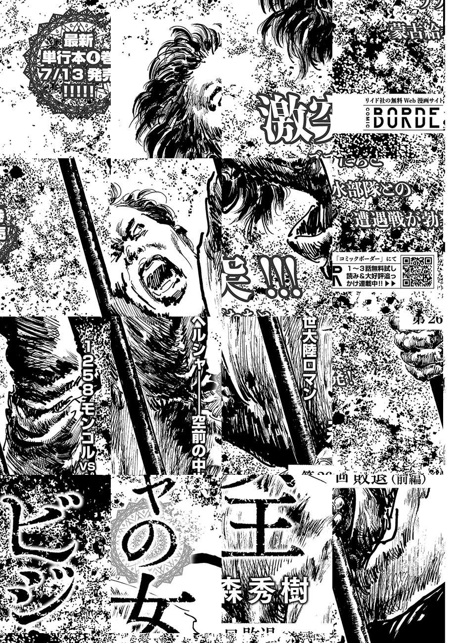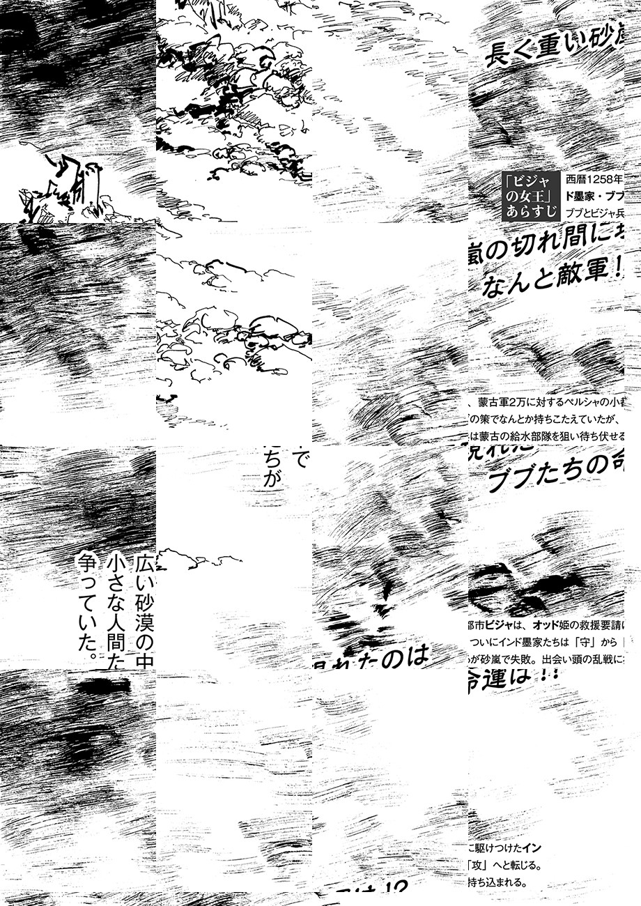 西暦1258年、 ペルシャ高原の小都市ビジャを、蒙古軍の支隊が包囲した。 世界の半分を制圧した最強騎兵は総数2万、 対するビジャの人口はわずか5千人である。 陥落は誰の目にも明らかだった———…。 モンゴル帝国によるペルシャ侵攻と、 大きな歴史のうねりの中で必死に抵抗する 小都市国家「ビジャ」を巡る攻防を描く。 さらに謎の集団「インド墨家」をも巻き込み、 繰り広げられるのは劇画史上最も異端な「時代劇」!!